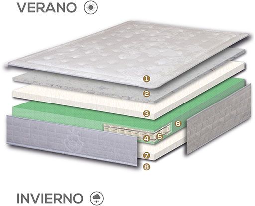 Este modelo de alta gama combina la transpirabilidad y resistencia que aporta el sistema de muelles ensacados con la adaptabilidad del VISCO&GRAFENO, garantiza una suave y agradable acogida y nos proporciona una doble sensación de confort gracias a su sistema doble top.