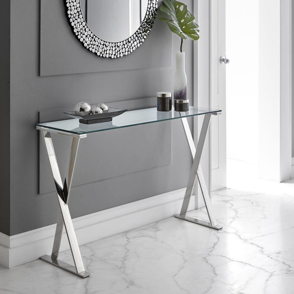 Consola Cro-Steel. Material: Cristal y Acero Inoxidable. Medidas: 120x40x78,5. REF: 010146230.